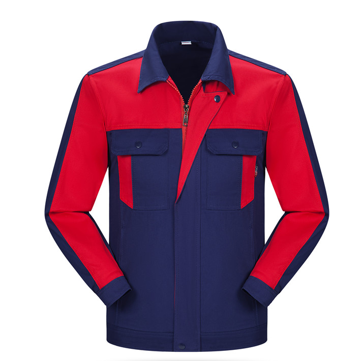 鳳臺縣工作服定做廠家定制工服款式全棉藏青色拼紅色套裝GZ-8019