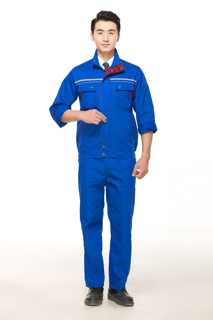 淮南工作服定做廠家定制煤礦機械工廠工服寶藍(lán)色立領(lǐng)拼色GZ-8025