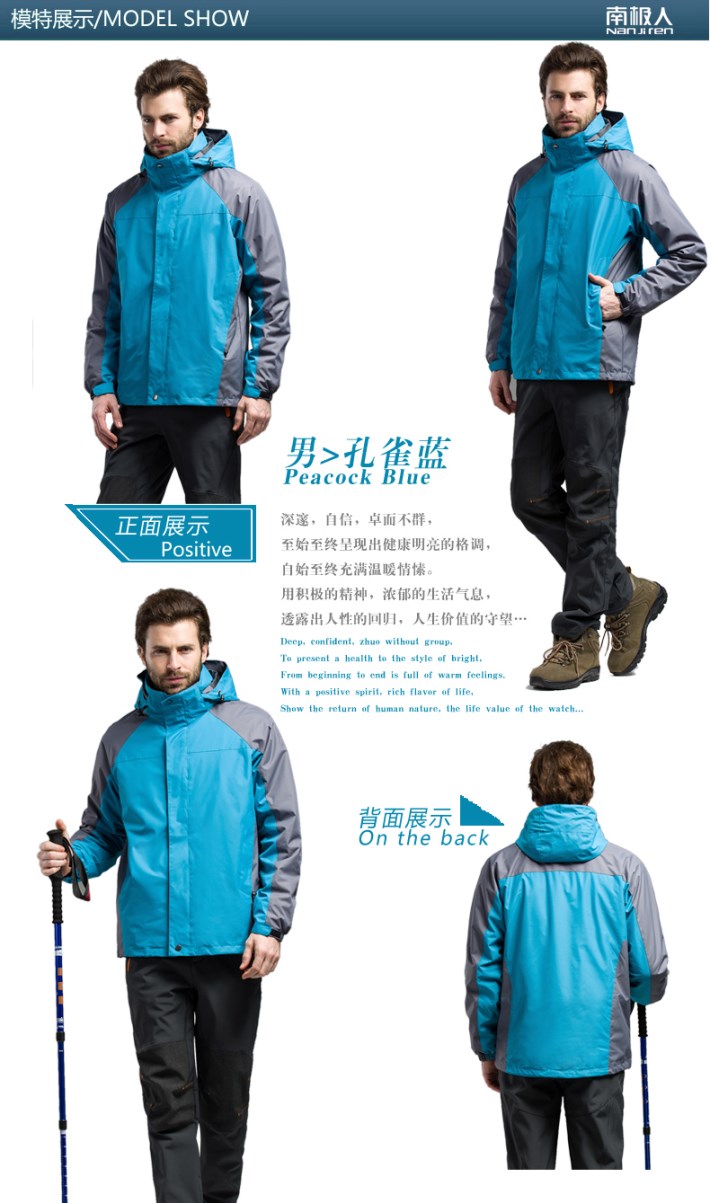 生產工藝:采用WEI-TEX防水透濕科技、三合一可拆卸內膽、立體裁剪