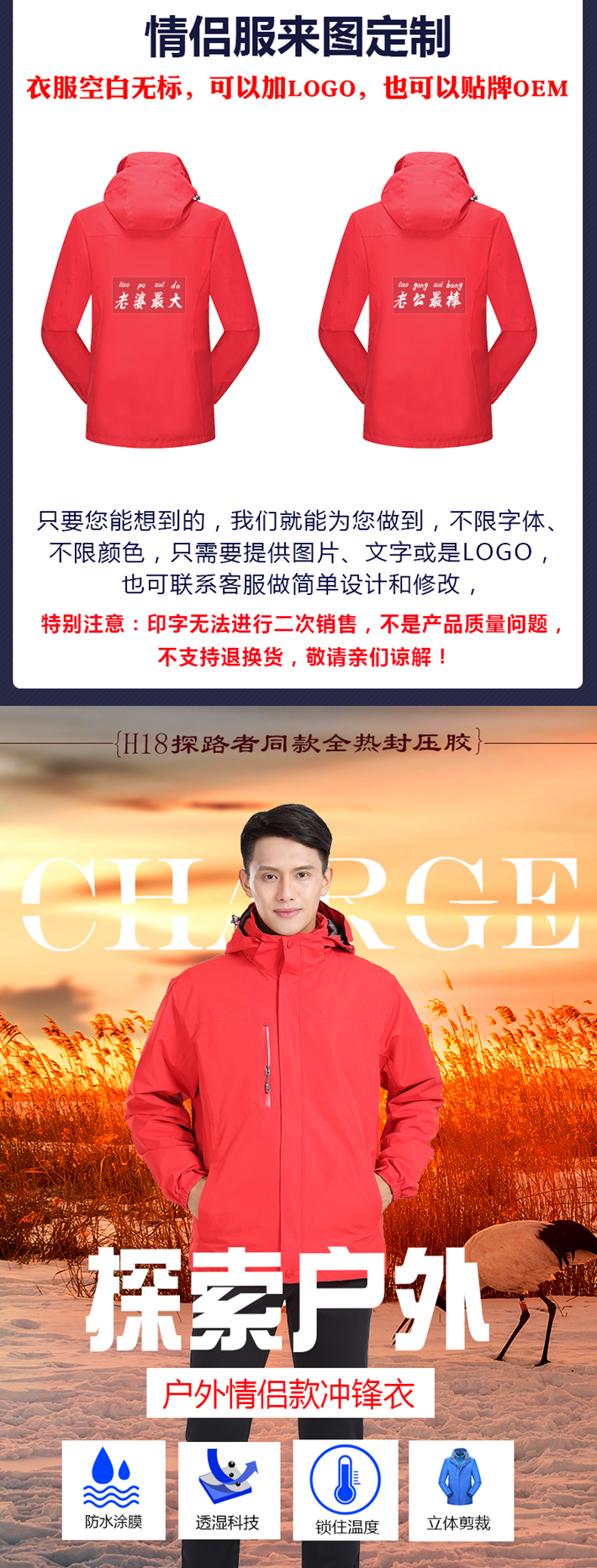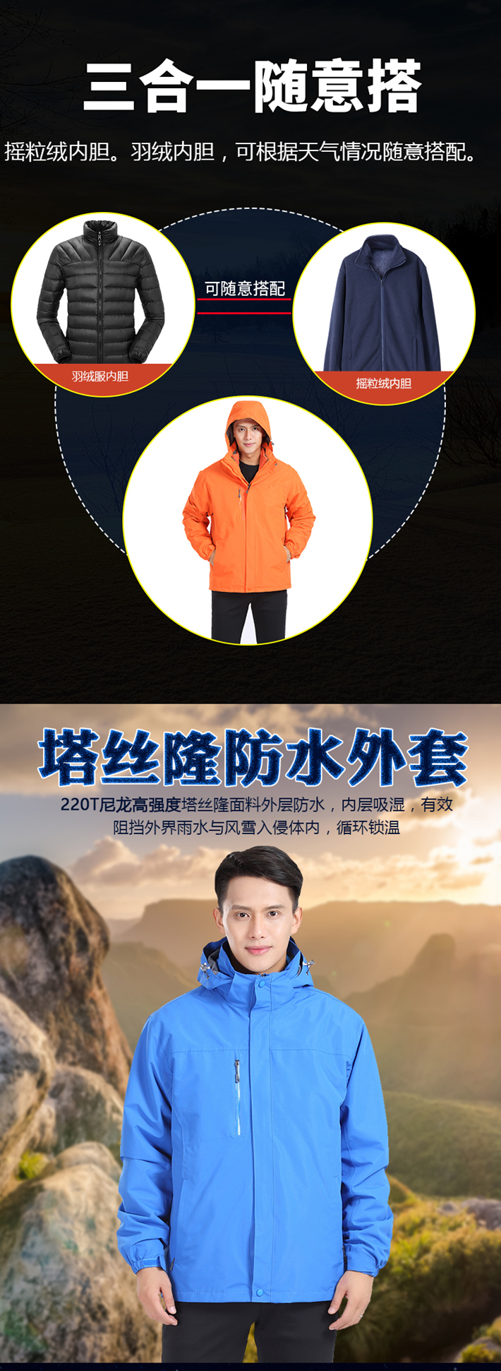 駱駝同款三合一定制沖鋒衣H1808