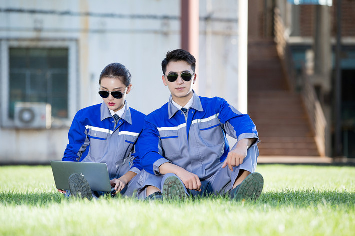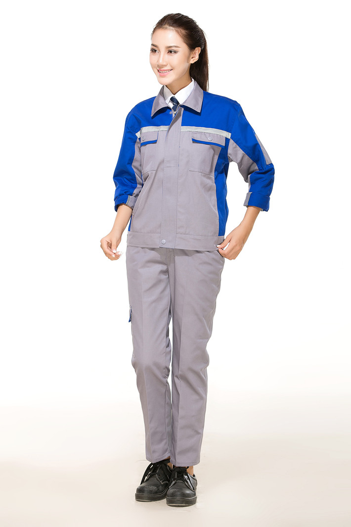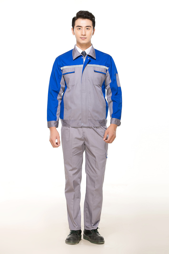滌棉灰色拼藍色反光條工作服套裝GZ-8013
