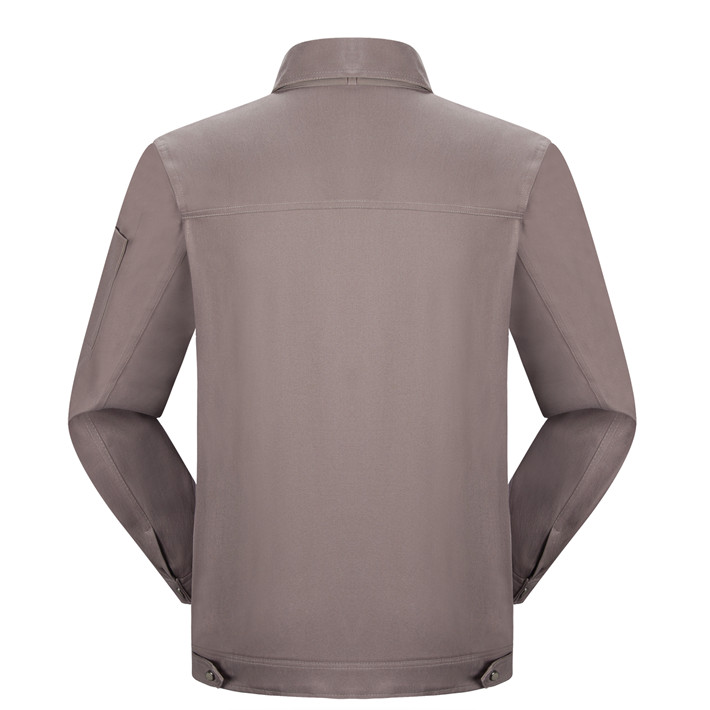 全棉紗卡卡其色拉鏈?zhǔn)焦ぷ鞣L袖套裝GZ-8022