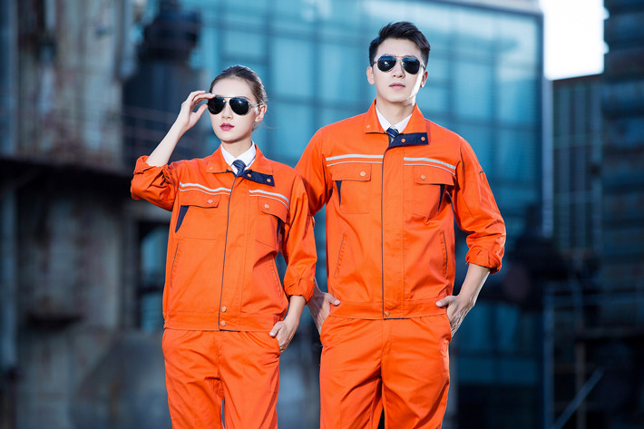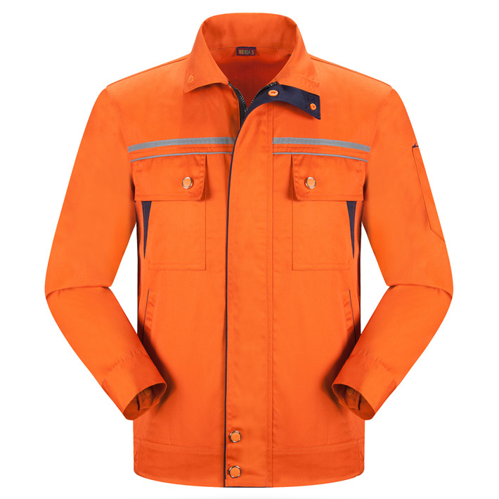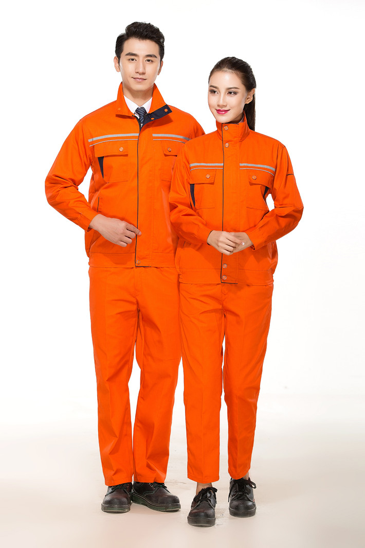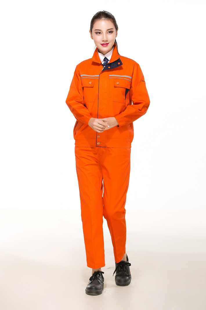 滌棉桔黃色立領(lǐng)拼色拉鏈?zhǔn)椒垂鈼l工作服長(zhǎng)袖套裝GZ-8024
