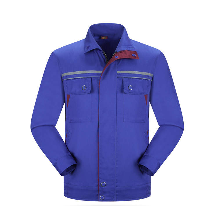 滌棉寶藍色立領拼色拉鏈式反光條工作服長袖套裝GZ-8025