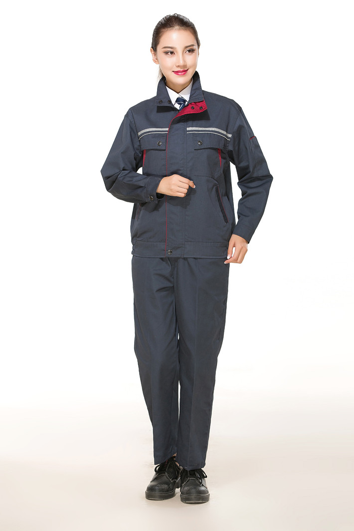 滌棉深灰色立領拼色拉鏈式反光條工作服長袖套裝GZ-8029