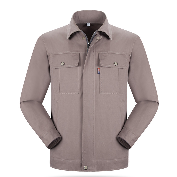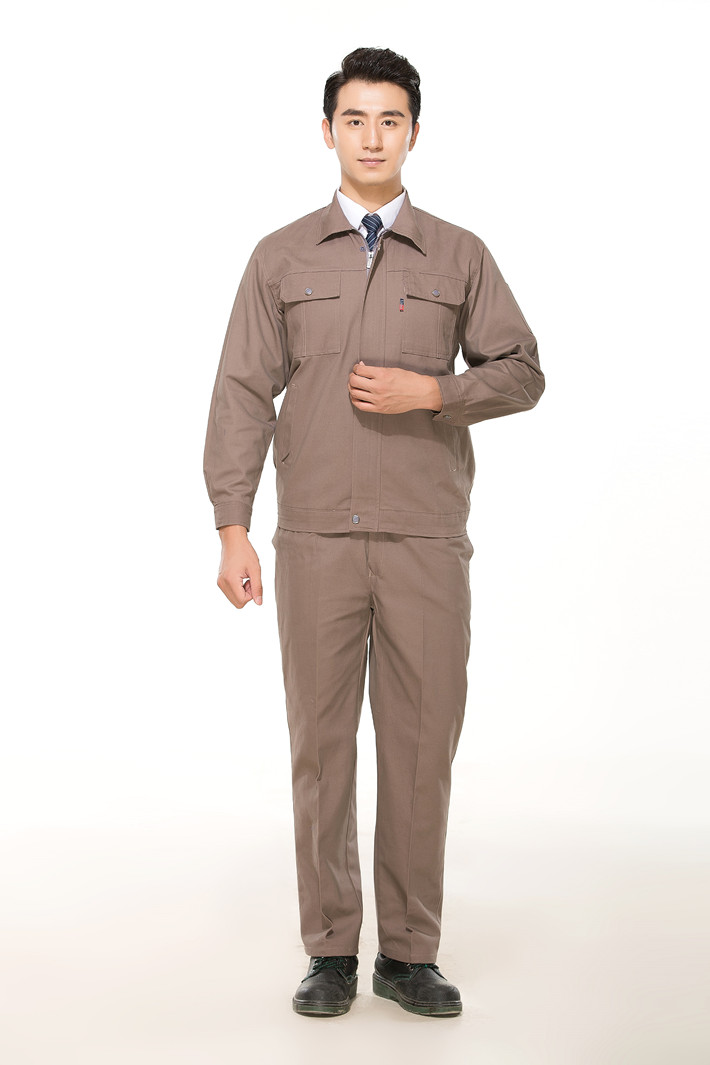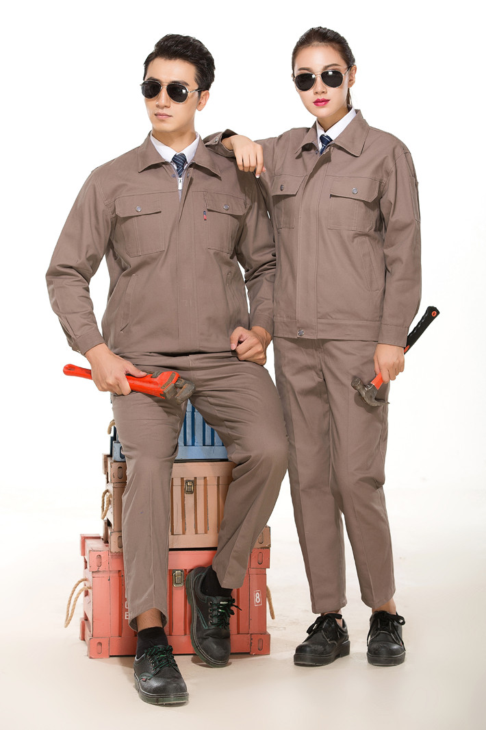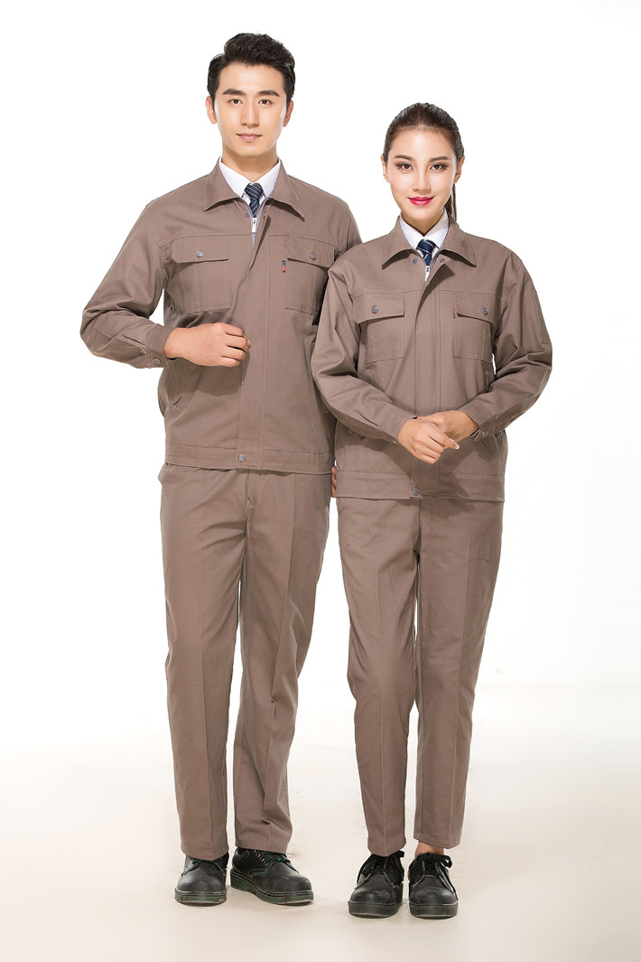 全棉紗卡卡其色拉鏈式工作服長袖套裝GZ-QM8022
