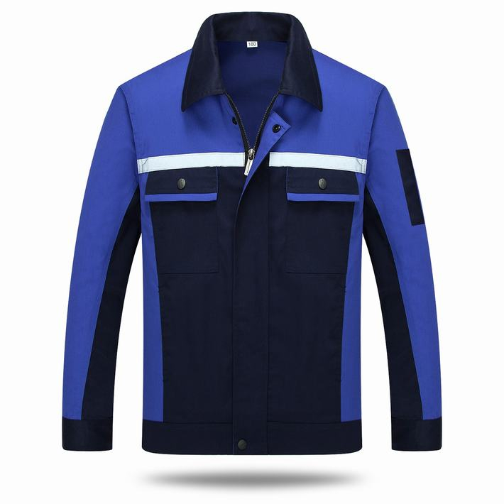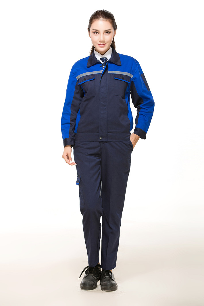 滌棉藏青色拼藍色反光條工作服套裝GZ-DM8011