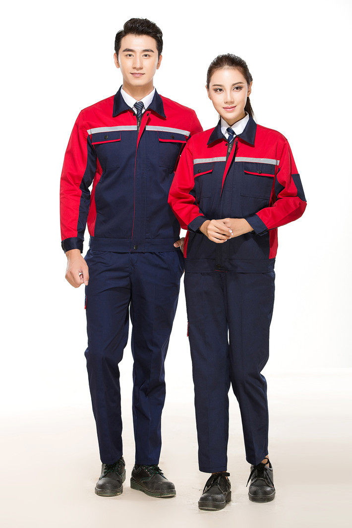 滌棉藏青色色拼紅色反光條工作服套裝GZ-FGT8012